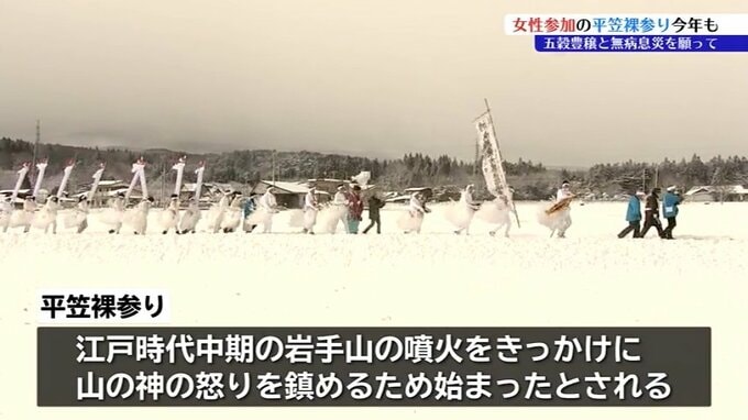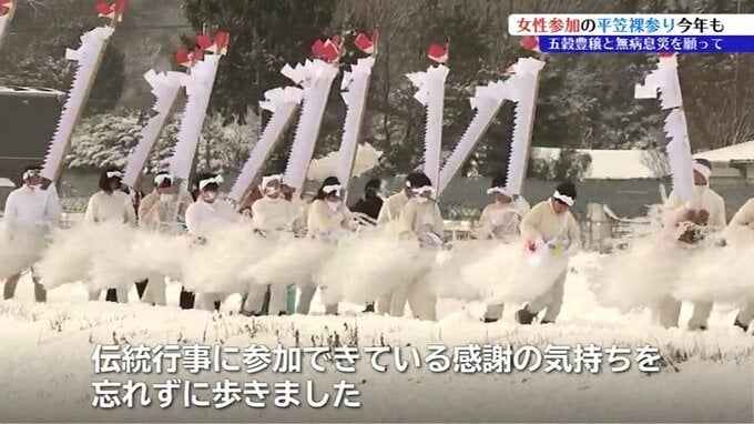 全国的に珍しい、女性や子どもが参加する荒行「平笠裸参り」 五穀豊穣や無病息災を願い、地域を練り歩く 岩手・八幡平市