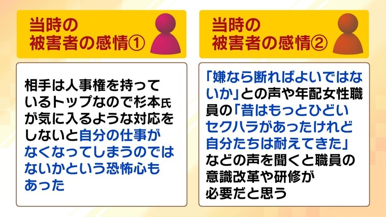 ▼「相手は人事権を持っているトップなので、杉本氏が気に入るような対応をしないと自分の仕事がなくなってしまうのではないかという恐怖心もあった」
