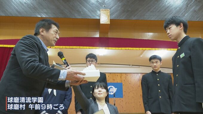 熊本県球磨村の義務教育学校「球磨清流学園」でも、受験を目前に控えた中学3年生にあたる9年生に「必勝祈願御守」が贈られました。