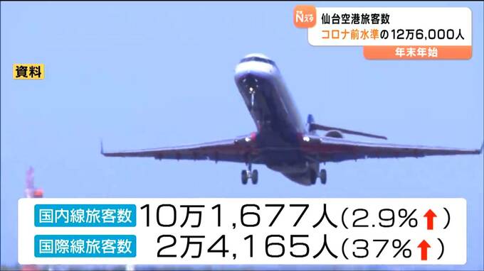 年末年始に仙台空港を利用した人の数は約12万6000人と、2025年より1万人近く増えました。円安などにより海外からの旅客数が増えたことが主な要因で、コロナ禍前の水準に近づいたということです。