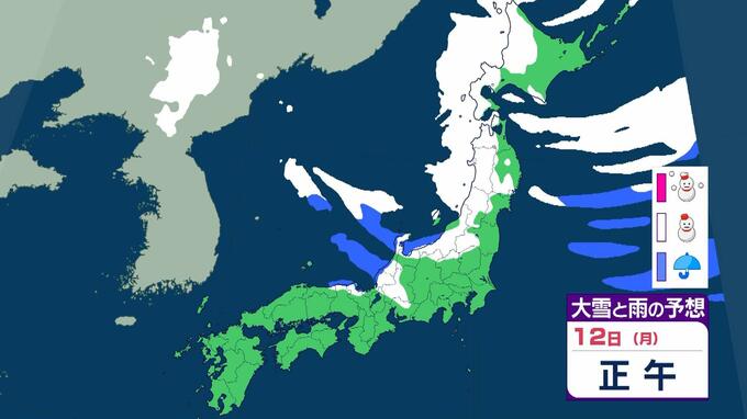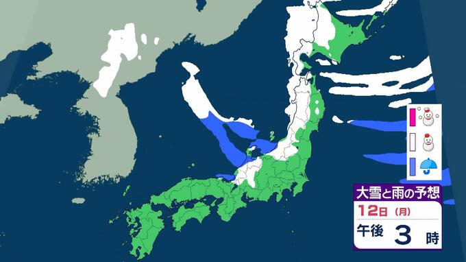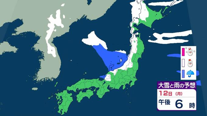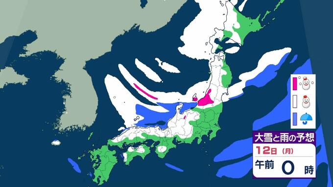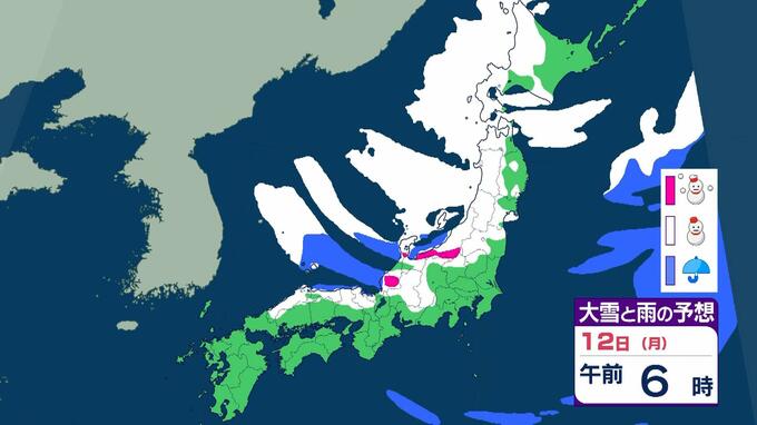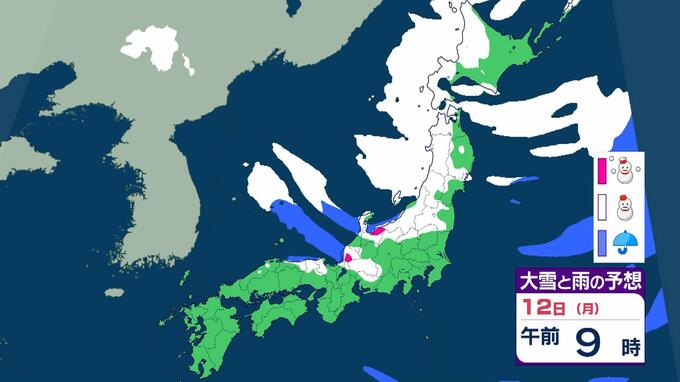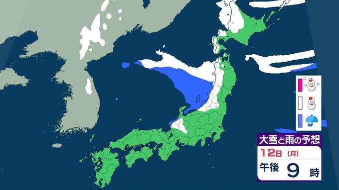 【警報級大雪おそれ】3連休は東北で1メートル、近畿北陸東海で70センチの降雪予想 成人の日は注意を!強い寒気が流れ込む影響で日本海側中心に大荒れか 気象庁 雨と雪のシミュレーション 毎日放送 2026年1月9日(金) 09:52 国内 天気 12日(月)雨と雪のシミュレーションを見る