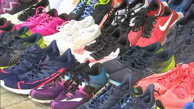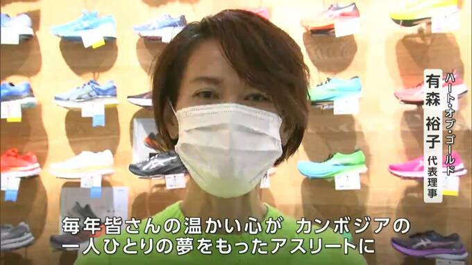 この活動は、岡山市北区の栄光スポーツが行っています。客から、使わなくなったシューズ約300足などが寄せられ、有森裕子さんが代表を務めるNPO法人ハートオブゴールドから、来年初めにカンボジアの障害者陸上競技連盟に贈られます。