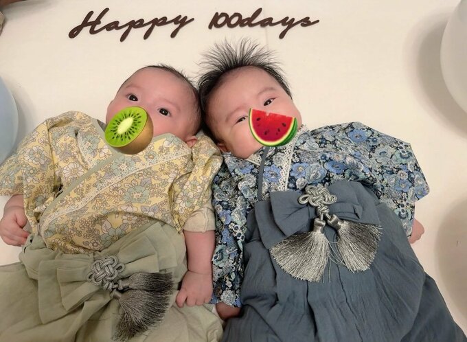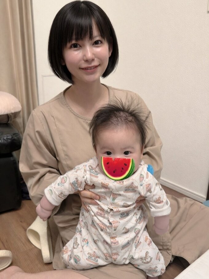 投稿した写真では、スイカのマークを付けたお兄ちゃんは「くすみブルー」、キウイフルーツのマークを付けた弟くんは「黄色と黄緑」の袴を着せてもらっていて、マットの上で堂々のポーズ。「おじいちゃんおばあちゃんが双子にぴったりな袴を買ってくれました!」と明かし、「お宮参りもお食い初めもまだちゃんとできてないから」「今月中にまた改めてちゃんとやりたいと思っています」と、楽しみな行事を予告しています。