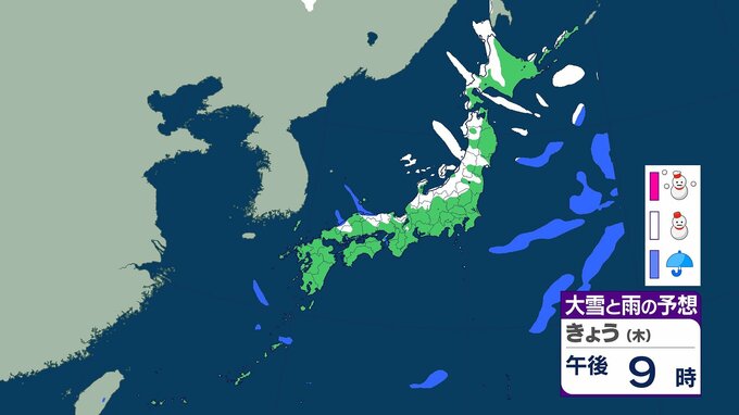 8日(きょう)の雪と雨のシミュレーション