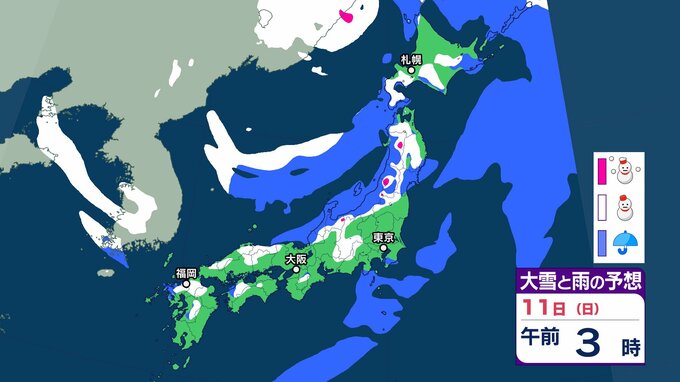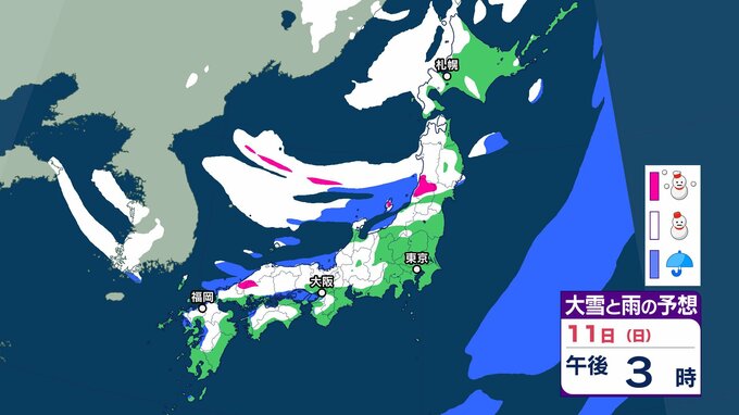 【大雪情報】今季“最強寒波”が3連休(成人の日)に到来→日本海側は「警報級の大雪」か 近畿・中国・四国・九州の西日本の平野部でも降雪のおそれ 交通機関への影響に注意【気象庁雪雨シミレーション/8日午後6更新】 RSK山陽放送 2026年1月8日(木) 18:02 国内 天気 11日(日)3時間ごとの雪と雨のシミレーション 【画像】 【画像】 【画像】 【画像】 【画像】 【画像】 【画像】 【画像】