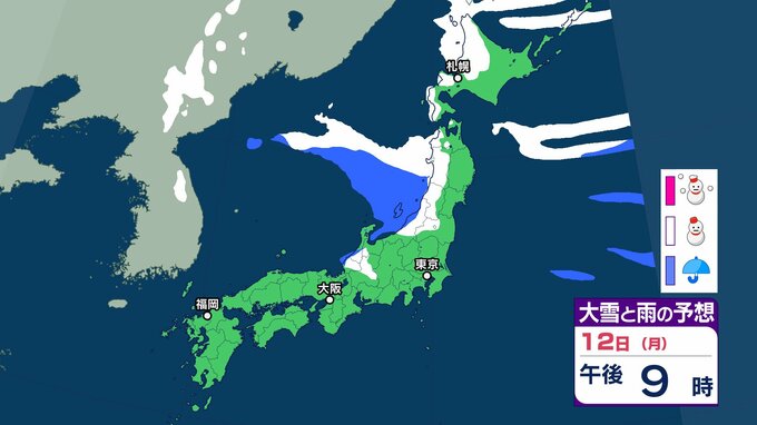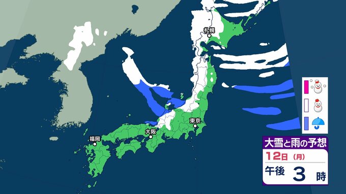 【大雪情報】今季“最強寒波”が3連休(成人の日)に到来→日本海側は「警報級の大雪」か 近畿・中国・四国・九州の西日本の平野部でも降雪のおそれ 交通機関への影響に注意【気象庁雪雨シミレーション/8日午後6更新】 RSK山陽放送 2026年1月8日(木) 18:02 国内 天気 12日(月)3時間ごとの雪と雨のシミレーションをみる 【画像】 【画像】 【画像】 【画像】 【画像】 【画像】 【画像】 【画像】