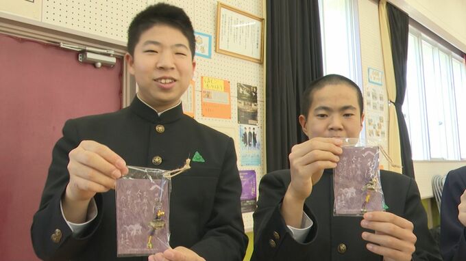 受け取った中学生たちは笑顔を見せながらも気を引き締めていたようです。