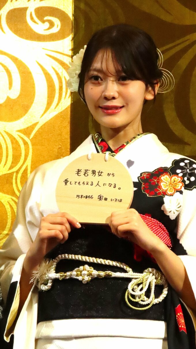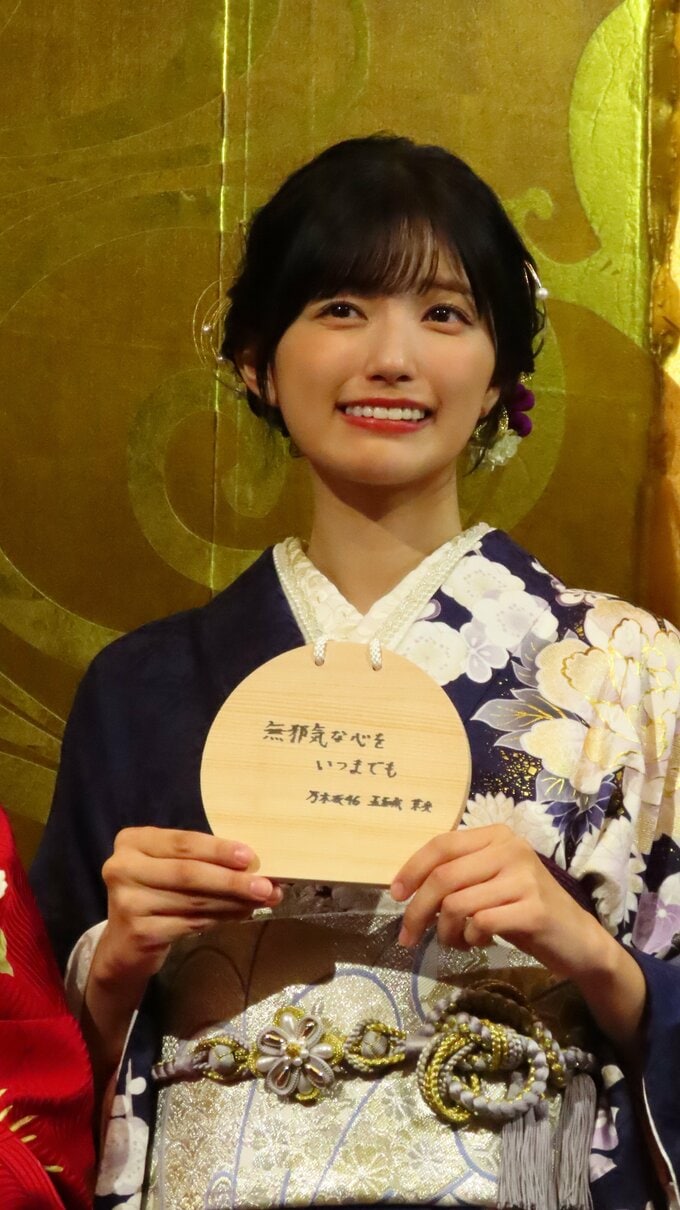 奥田さんは‟乃木坂の円陣にもあるように「努力、感謝、笑顔」を忘れずに。そしておちゃめかつ上品な。いえいえ「上ヒヒーン」な女性になれるように頑張ります”と午年に絡めて抱負を語りました。絵馬については‟「老若男女から愛してもらえる人になる」と書いたんですけど、人生の目標なので、なれるように頑張ります。”と声を弾ませました。
