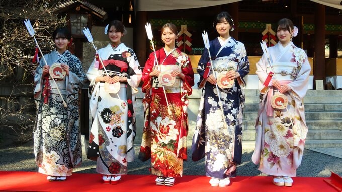 乃木坂46の成人式が乃木神社で行われ、成人式に参加した5期生の菅原咲月さん、五百城茉央さん、奥田いろはさん、6期生の愛宕心響さん、瀬戸口心月さんが成人の抱負を語りました。