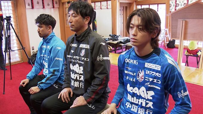 岡山市中区の沖田神社を訪れたのは、木山隆之監督と竹内涼選手、そして、セレッソ大阪から完全移籍で新加入した西川潤選手の3人です。来月開幕する特別大会・百年構想リーグと、8月に開幕するJ1リーグの必勝を祈願しました。