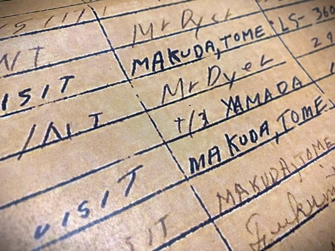 スガモプリズンに収監された戦犯たちに関しては、行政的な基本データが残されている。写真入りの個人プロフィールのほか、刑の確定や執行を告げる公文書などだ。石垣島事件の被告たちの書類一式の中に、収監された1947年の面会記録があった。幕田大尉の記録を見ると、母トメが面会した記載が5回あった。日付は5月7日、6月10日、7月9日、8月22日、10月24日だ。石垣島警備隊の司令、井上乙彦大佐は被告の中では一番早く、その年の1月に収監されていたが、神奈川県に住む妻は月に1回のペースでスガモプリズンに通っていた。近県ならともかく、当時は山形から東京に行くには一晩かかった。スガモプリズンから最初に届いた3月25日付の幕田からの手紙には「面会などは固くお断り」と書いてあったが、母トメは「心配をかけたくない」という息子の気遣いは横に置いて、とにかく息子に会いにいかなくてはと行動に移したのだろう。幕田が4月21日に書いた二通目の手紙は、米軍の検閲印の日付が4月28日だったが、そのすぐ後、5月7日には最初の面会をしている。居ても立っても居られなかったのだろう。
