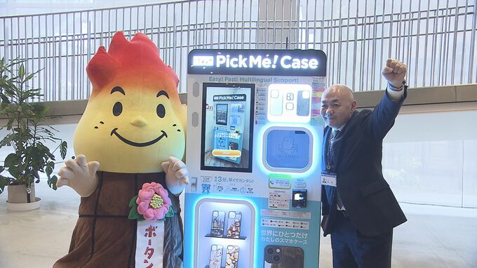 8日、設置を祝うセレモニーが行われ、須賀川市の大寺正晃市長などが、テープにはさみを入れました。そして早速、大寺市長と須賀川市のマスコットキャラクター「ぼーたん」が写真を撮影して、オリジナルケースを作ることに。