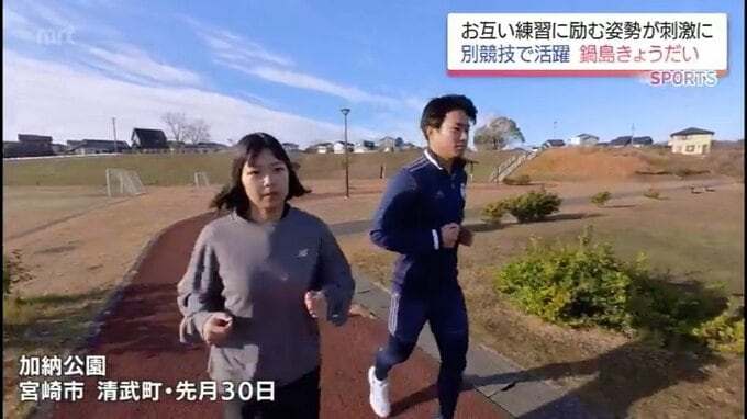 宮崎市清武町の公園でランニングに励むのは、宮崎市出身で兄の鍋島暖歩(はるむ)さん(21歳)と、4歳年下の妹の実愛(みあ)さん(17歳)。
