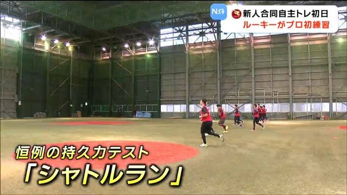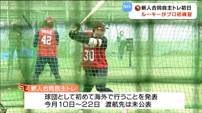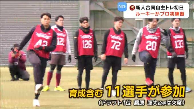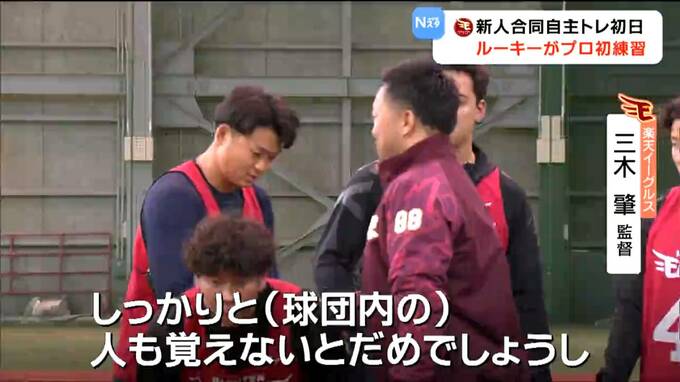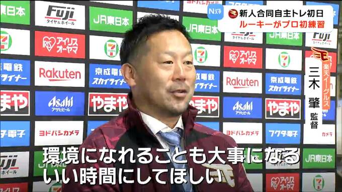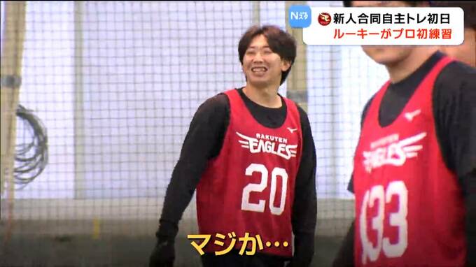 プロ野球・東北楽天ゴールデンイーグルスの新人合同自主トレがスタート、ルーキーたちがプロとして初のトレーニングに臨みました。