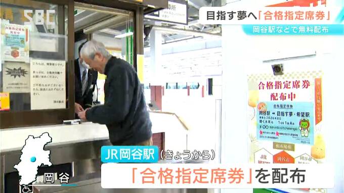 JR岡谷駅などで8日から配布が始まった、その名も「合格指定席券」です。受験や就活など夢に向かって頑張る人たちを後押ししようと、岡谷駅と市の観光協会が共同で企画しました。