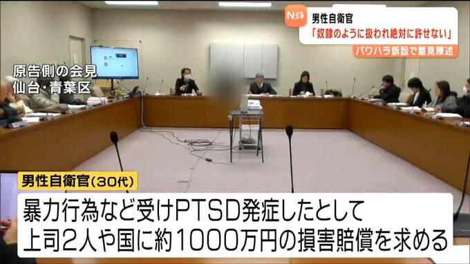 宮城県内の駐屯地に所属する陸上自衛隊の男性自衛官が、上司から暴力行為などを受け精神疾患を患ったとして、上司2人と国に対し損害賠償を求めた裁判が1月8日、仙台地方裁判所で始まりました。男性自衛官は「奴隷のように扱われ絶対に許せない」などと訴えました。