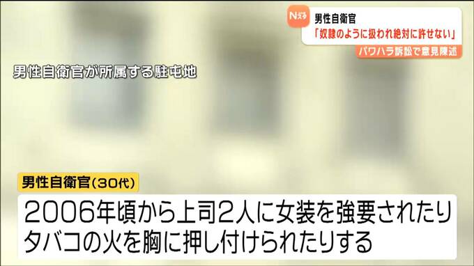 この裁判は、宮城県内の駐屯地に所属する30代の男性自衛官が、入隊直後の2006年頃から上司2人に女装を強要されたりタバコの火を胸に押し付けられたりする暴力行為などを受けPTSDを発症したとして上司2人や国に対し、約1000万円の損害賠償を求めているものです。