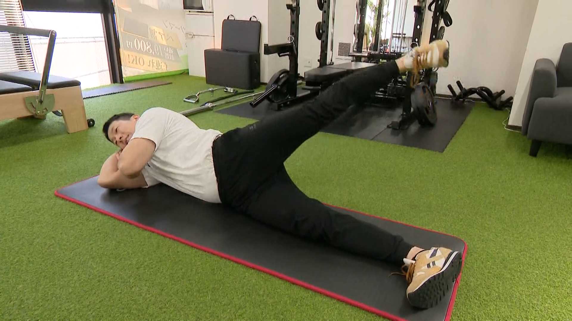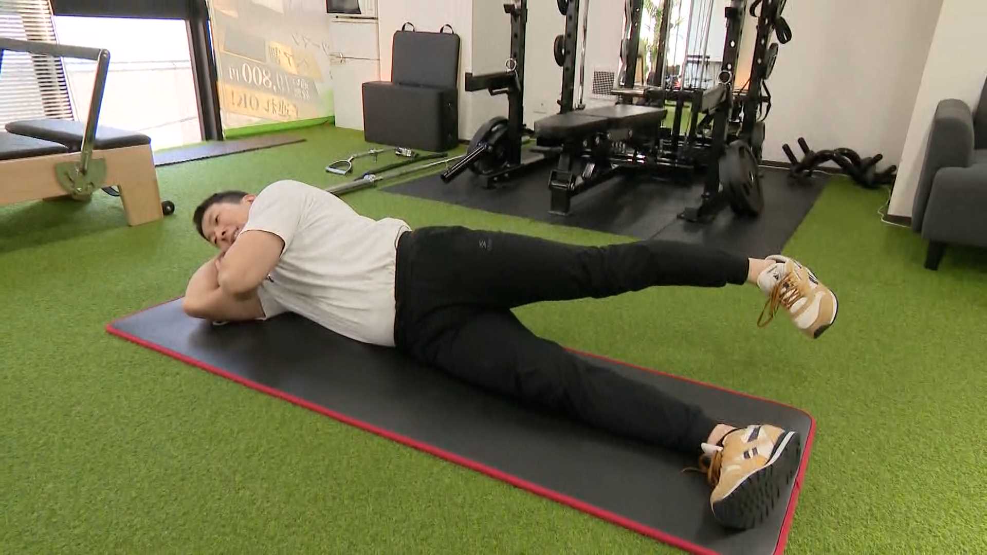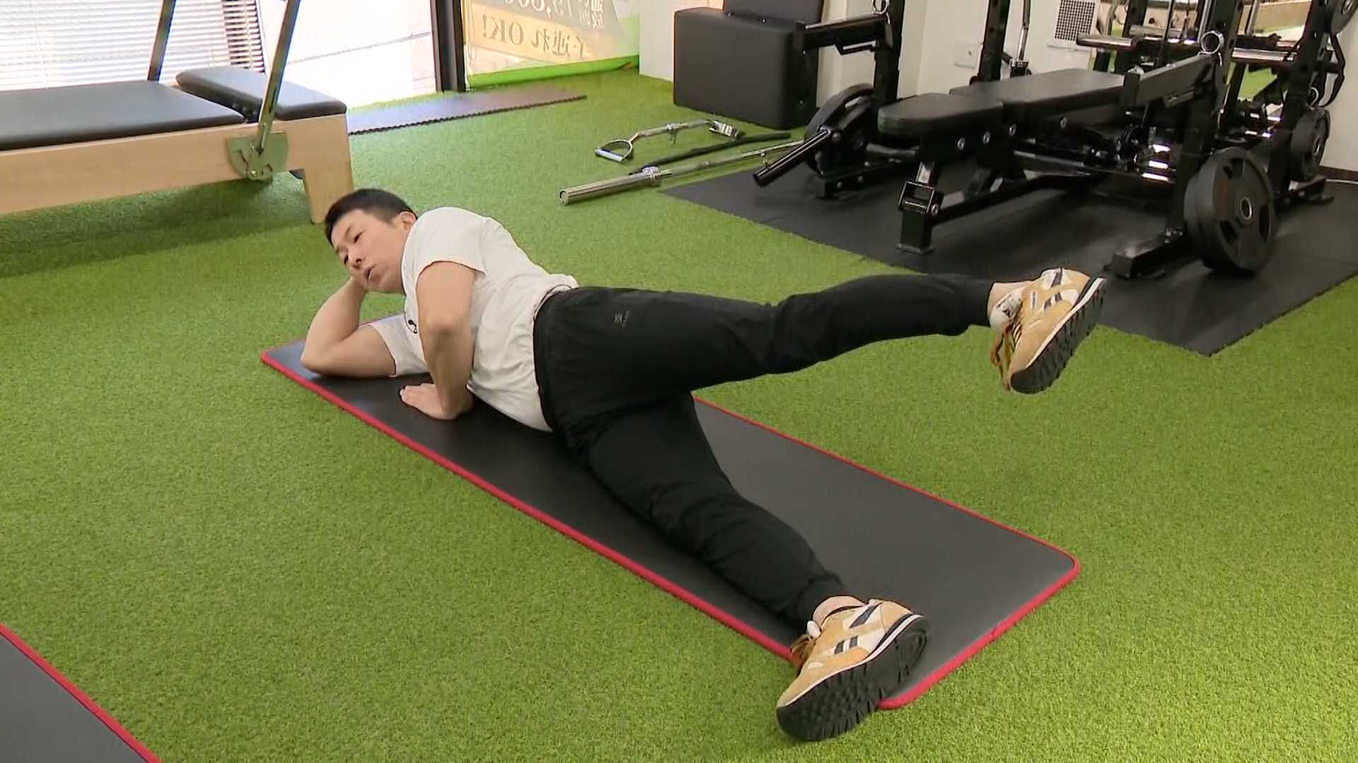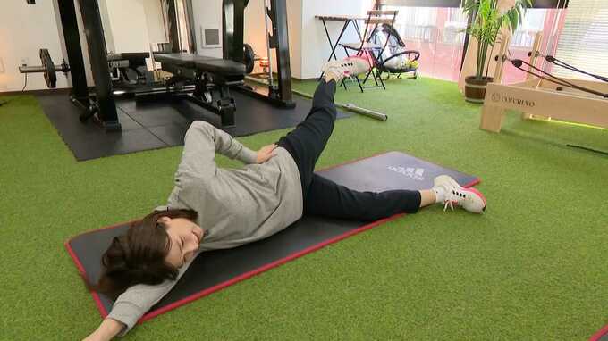 「足を引いて足首を内側に入れることでお尻のサイドの部分に効きますね」