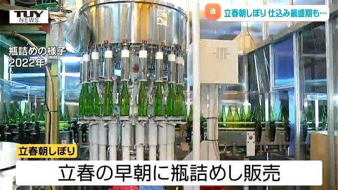 山形県寒河江市の日本酒の蔵元では立春の朝に瓶詰した新酒を、その日のうちに販売する「立春朝しぼり」の仕込みが最盛期を迎えています。