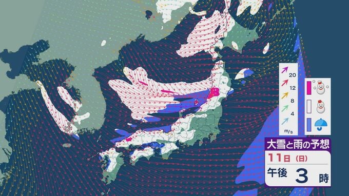 【3連休の大雪情報】11日(日)から成人の日の12日(月)にかけて“冬型”と“かなり強い寒気”で日本海側は警報級の大雪のおそれ 沿岸部では暴風雪に注意・警戒を 雪・雨と風シミュレーション 北陸放送 2026年1月8日(木) 20:03 国内 11日は、冬型の影響で北西よりの風が日本海で強まり山陰から北の日本海側では雪が降る見込みです。夜にかけては、発達した雪雲が流れ込み北陸で大雪のおそれがあります。