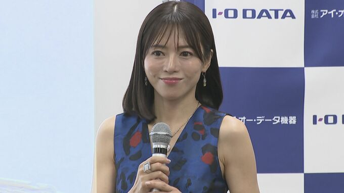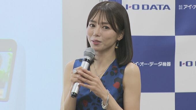 俳優の釈由美子さんが、スマホ・TV・パソコン周辺機器の総合メーカー「アイ・オー・データ機器50周年プレス発表会」に登壇しました。