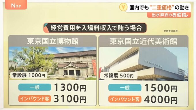 現在、日本の国立博物館や美術館の経営は入場料の収益に加え、公費によって賄われています。そこで財務省が入場料収入だけで賄う場合の料金を試算しました。