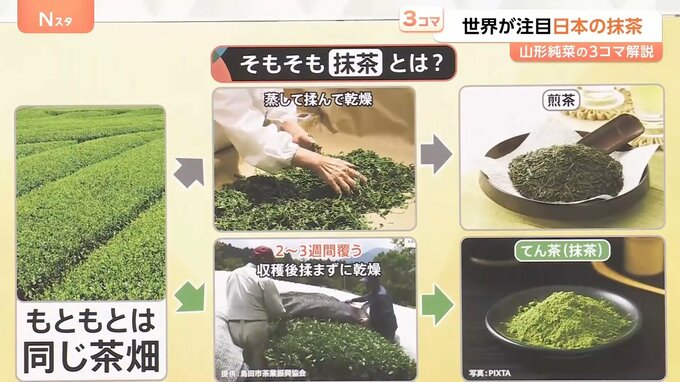 「煎茶」も「てん茶」も元々は同じ茶畑でできるということで、抹茶の需要が高まっているため、煎茶から抹茶作りに移行する農家が増えているということです。