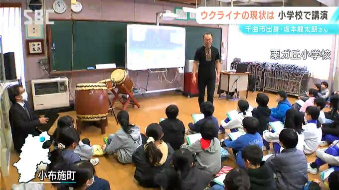 一時帰国した坂本さんは県の内外で講演を行う予定で、8日は小布施町の栗ガ丘小学校でウクライナの現状を伝えました。