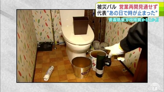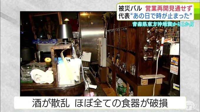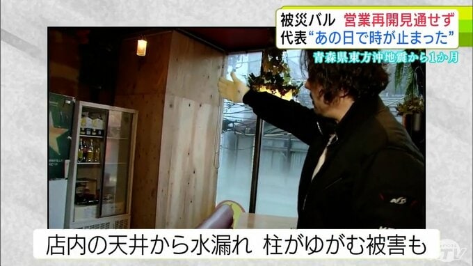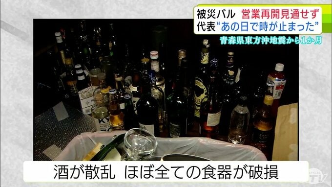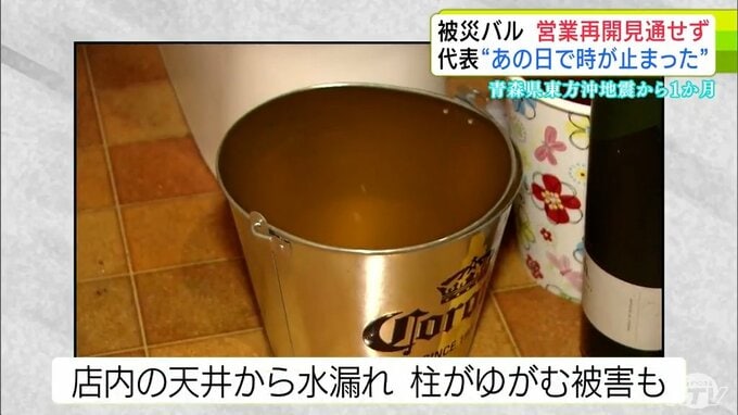 八戸市中心街で飲食店「バル カンデーラ」を経営する三浦圭希さん。三浦さんの店では、地震発生直後、棚にあった酒が散乱。ほぼ全ての食器が割れました。また、店内の天井からは水漏れ。柱がゆがむ被害もありました。
