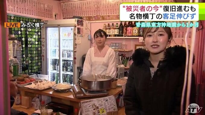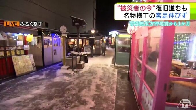 八戸市の中心街にあり、多くの飲食店が立ち並ぶ観光名所「みろく横丁」も大きな被害を受けた場所の1つです。普段であれば県内外の観光客などでにぎわう場所ですが、地震の影響で客足が伸びない状況です。