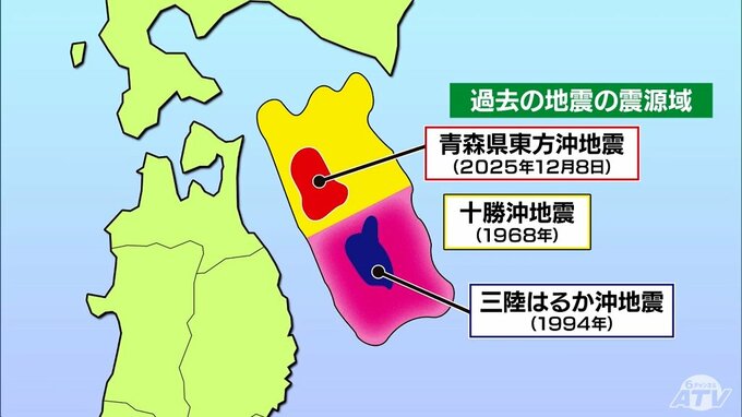 その後の1994年に起きた三陸はるか沖地震では、その南側だけが破壊され、北側の部分が2025年12月の地震で破壊されました。このため、十勝沖地震の震源域の南側は30年以上、ほとんど破壊されることなく残されていることになります。