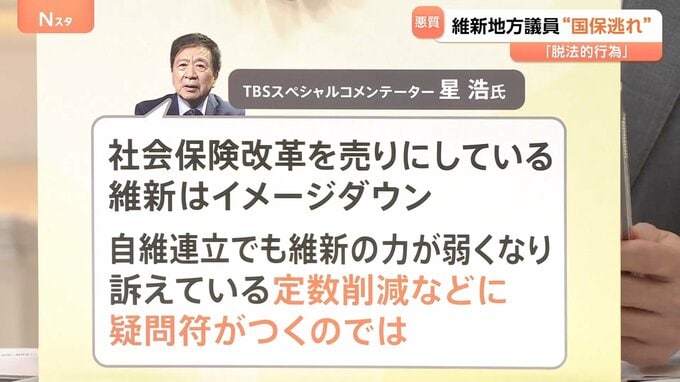 TBSスペシャルコメンテーターの星浩さんは「社会保険改革を売りにしている維新はイメージダウン。自維連立でも維新の力が弱くなり、訴えている定数削減などに疑問符がつくのでは」と分析しています。