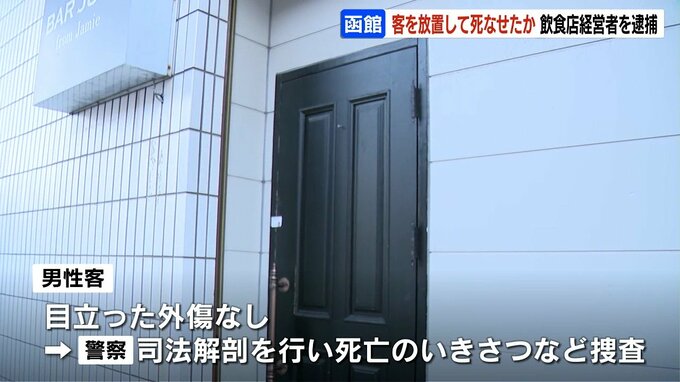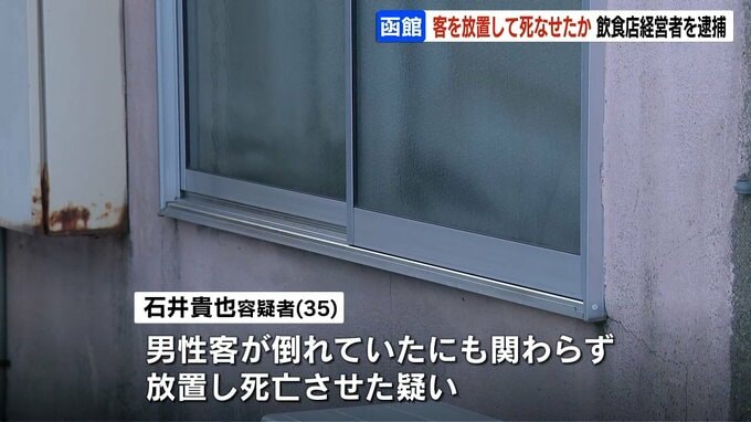 7日、北海道函館市の飲食店で倒れていた客を放置して死なせた疑いで、経営者の男が逮捕されました。
