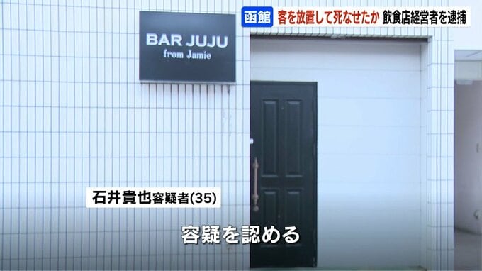 警察は、男性客が倒れていたにもかかわらず、救急車を呼ぶなどせず放置し死亡させた疑いで、店の経営者の石井貴也容疑者を逮捕しました。