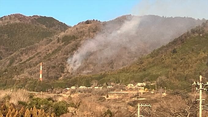山梨県東部の上野原市の扇山ではきのう8日に山林火災が発生し、ヘリコプターによる放水など日没まで消火活動を行いましたが、鎮圧せず延焼の範囲は拡大しています。