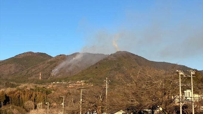 これまでにけが人や建物への延焼は確認されていませんが市は山のふもとにある大目地区の76世帯143人に避難指示を出しています。
