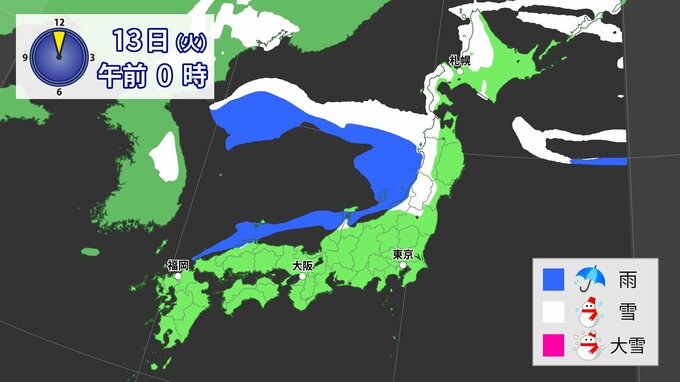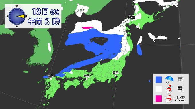 【大雪警報】今夜が最大の山場 JPCZ停滞で東北80cm・北陸東海70cm予想 13日(火)に…