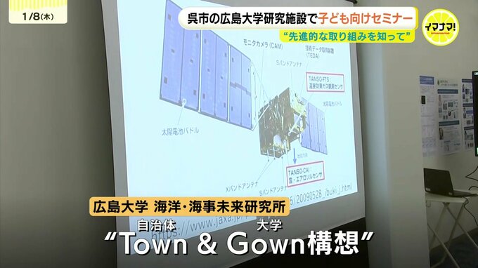 広島大学 海洋・海事未来研究所は、自治体と大学が一体となって取り組む「タウン(自治体)・アンド・ガウン(大学)構想」の一環で去年10月に設立されました。人工衛星や水 中ドローンなどを活用し、海の状況を研究しています。