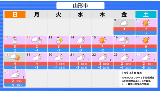 【山形天気】山形県では11日から12日頃にかけて大雪に警戒 24時間降雪量は? 山形・全国の天気を画像で 気象庁 テレビユー山形 2026年1月9日(金) 10:27 国内 ■山形・全国の天気を画像で 画像はTBS NEWS DIG Powered by JNNより 画像ありの記事を最初から https://newsdig.tbs.co.jp/articles/-/2390816?display=1
