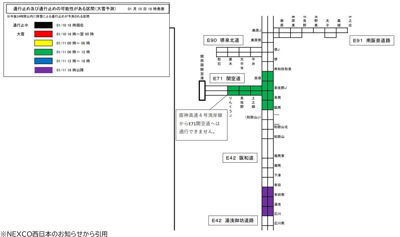 ・泉佐野JCT~りんくうJCT 11日午前6時以降