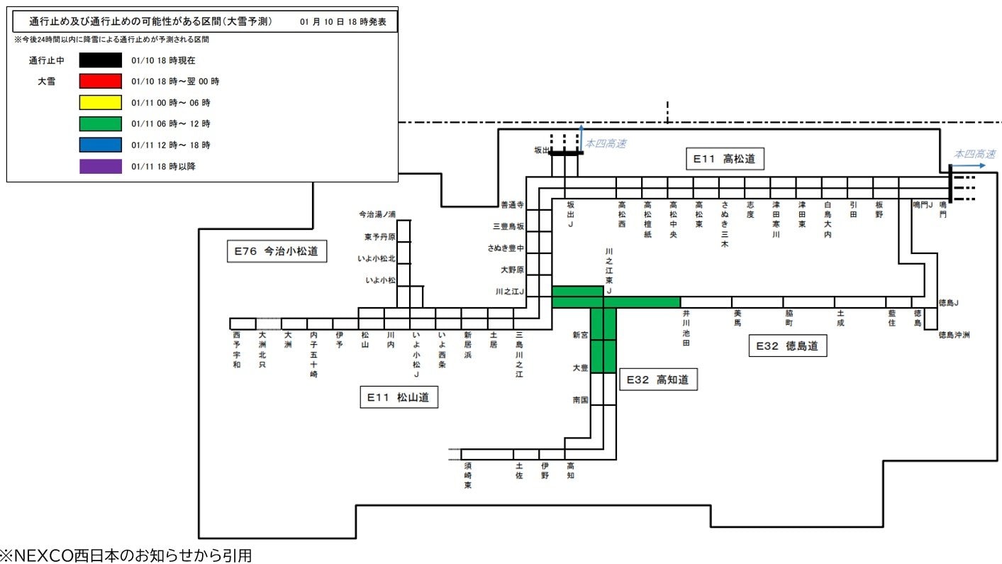 ・井川池田IC~川之江JCT 11日午前6時以降
