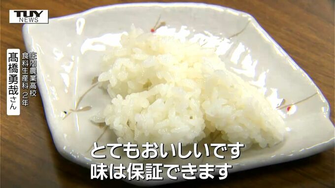 庄内農業高等学校 2年生 髙橋勇哉さん「とても美味しいです。味は保証できます。甘みが強くて冷めても美味しいお弁当とかにもいかせるコメですので、皆さん色々な場面で食べてほしい」