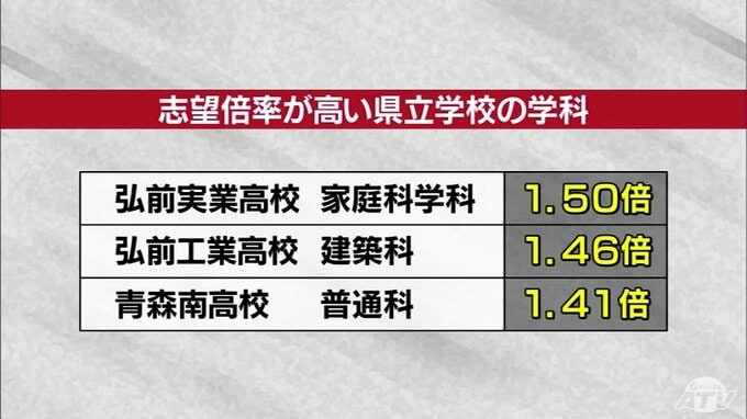 倍率が最も高いのは弘前実業高校・家庭科学科で1.50倍でした。
