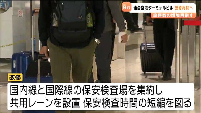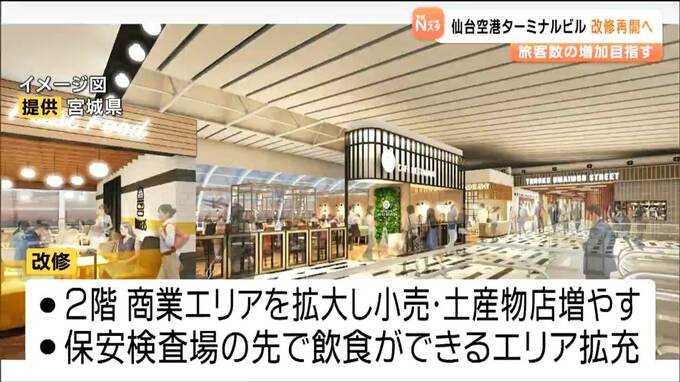 この改修事業は、空港に滞在する人の利便性と快適性を高めることを目的に、2020年に一度着手されましたが、コロナ禍により中断していました。仙台国際空港は2044年度に旅客数550万人を達成することを目標に掲げていて、2026年度中にも改修に着手しインバウンドなどの受け入れ態勢の強化を図ることにしています。