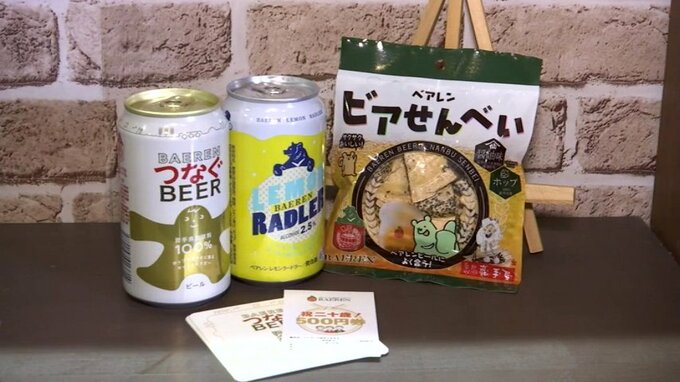 2026年に用意されたのはビール2本と地元菓子メーカーと作ったせんべい、直営の飲食店で使える500円の食事券です。