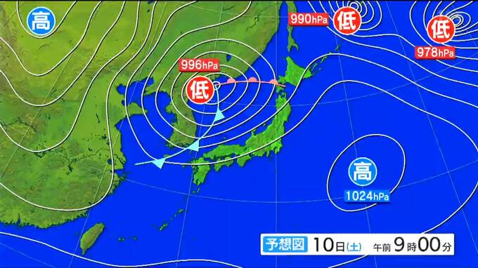 【10日午前9時の予想天気図】