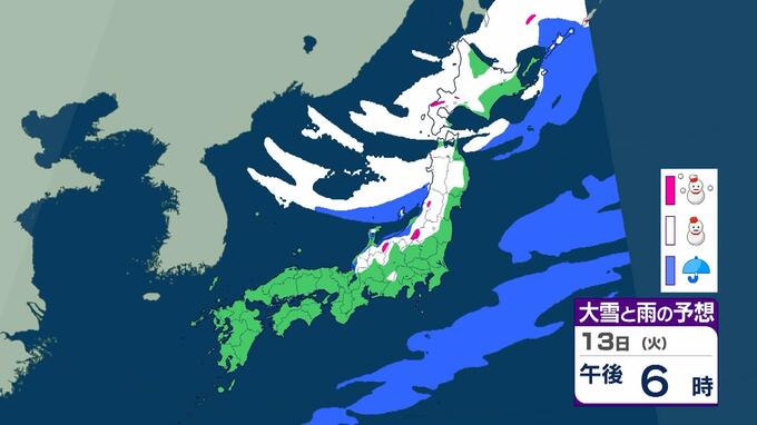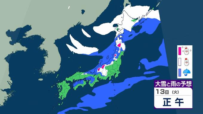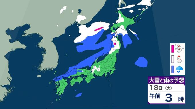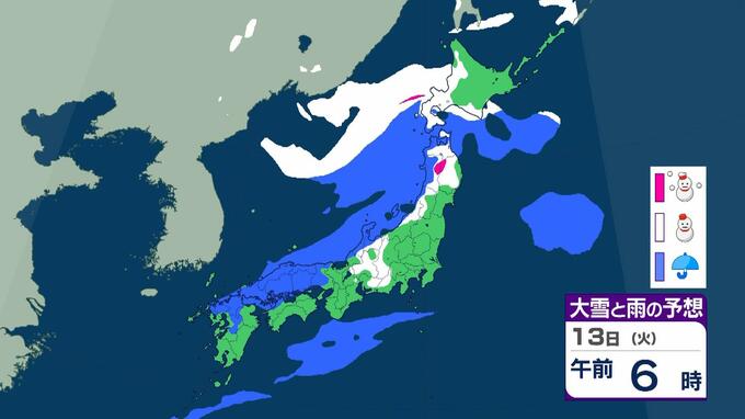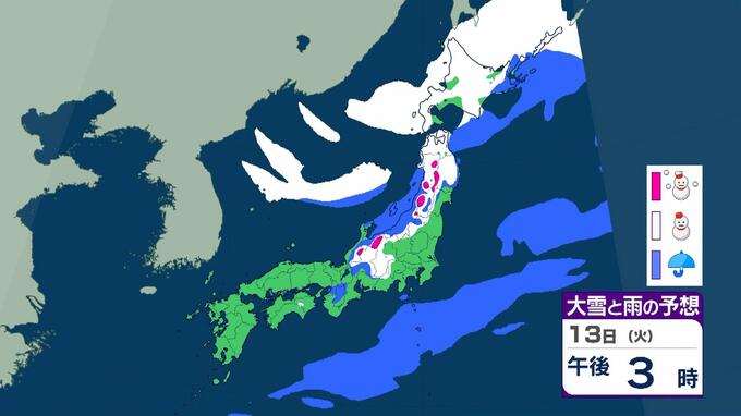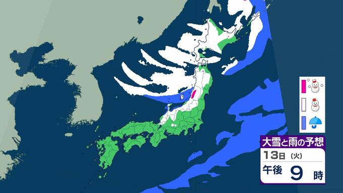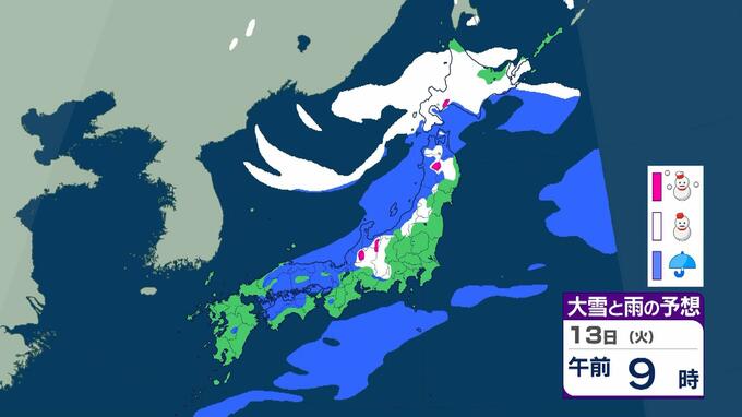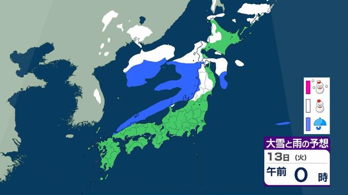 成人の日は警報級の大雪おそれ 3連休の大阪で高速道路が『通行止めの可能性』 東北で降雪100センチ予報も…交通障害に警戒呼びかけ【大雪情報】 毎日放送 2026年1月9日(金) 15:35 国内 天気 13日(火)雨と雪のシミュレーションを見る