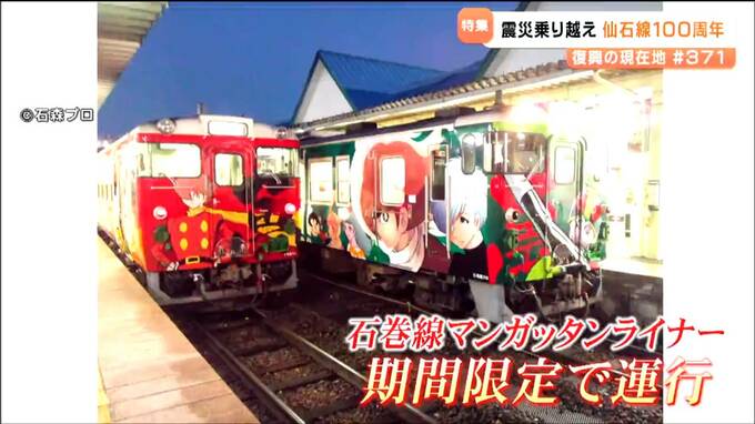 石ノ森萬画館を運営する会社・「街づくりまんぼう」と企画し、マンガッタンライナーをJR石巻線で2013年から2年間、期間限定で運行させたのです。