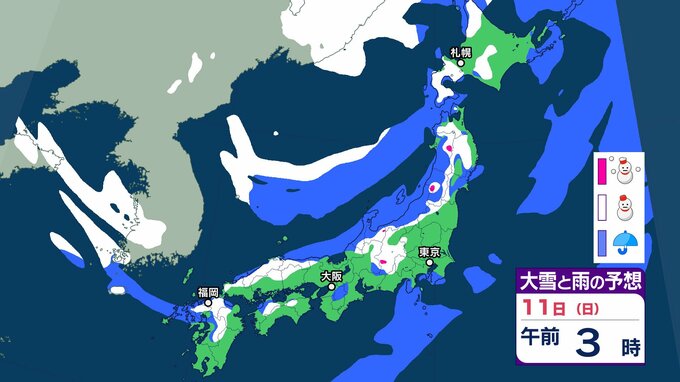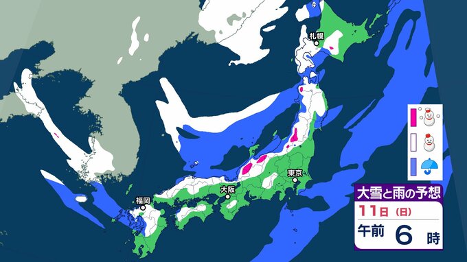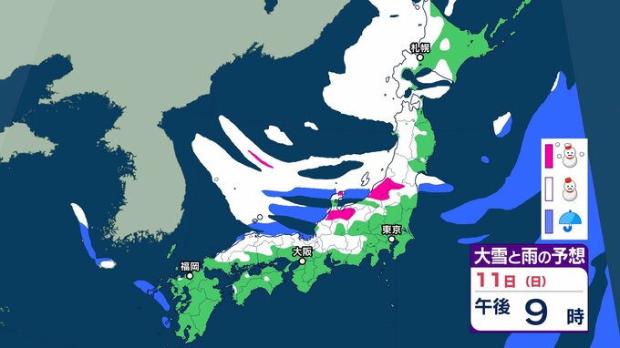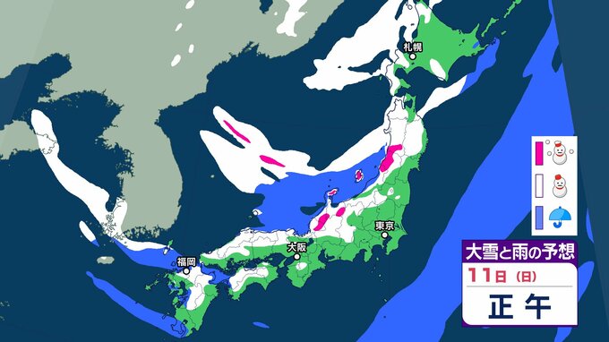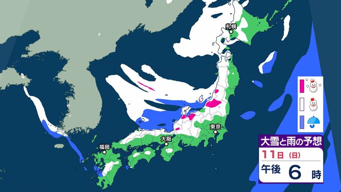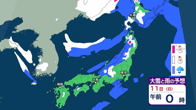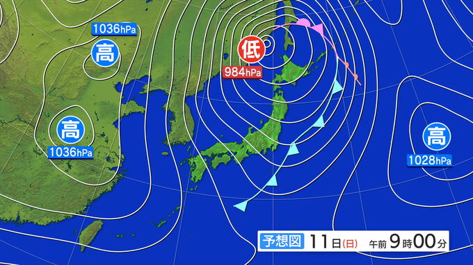 気象庁によりますと、前線は11日朝にかけて北~西日本を通過し、11日は強い冬型の気圧配置となり、日本海には11日朝までに日本海寒帯気団収束帯(JPCZ)が発生し、東北日本海側を指向するでしょう。