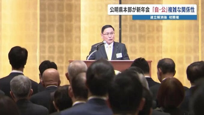 自民党と公明党の連立が解消されて初めてとなる、公明党熊本県本部の新年会が開かれました。